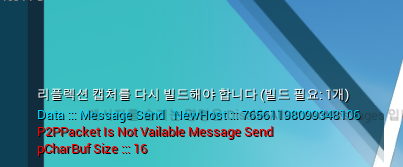 아래의 P2PPacket Is Not Vailable은 cpp 코드 114번째 줄인데 로그를 잘못 넣은 것이므로 로그를 고치거나 신경 쓰지 않아도 된다.